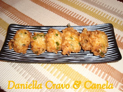 Eu tento ao máximo evitar frituras, mas bolinho de arroz é algo que eu não resisto! Adoro! Peguei essa receita na internet e dizia que é do Restaurante Ritz em São Paulo e como foi exatamente lá que eu comi os melhores bolinhos de arroz da minha vida, eu resolvi tentar. Eu acrescentei a cebola bem picadinha porque tenho certeza que leva no bolinho deles e não estava na receita. Ficou muito bom!
